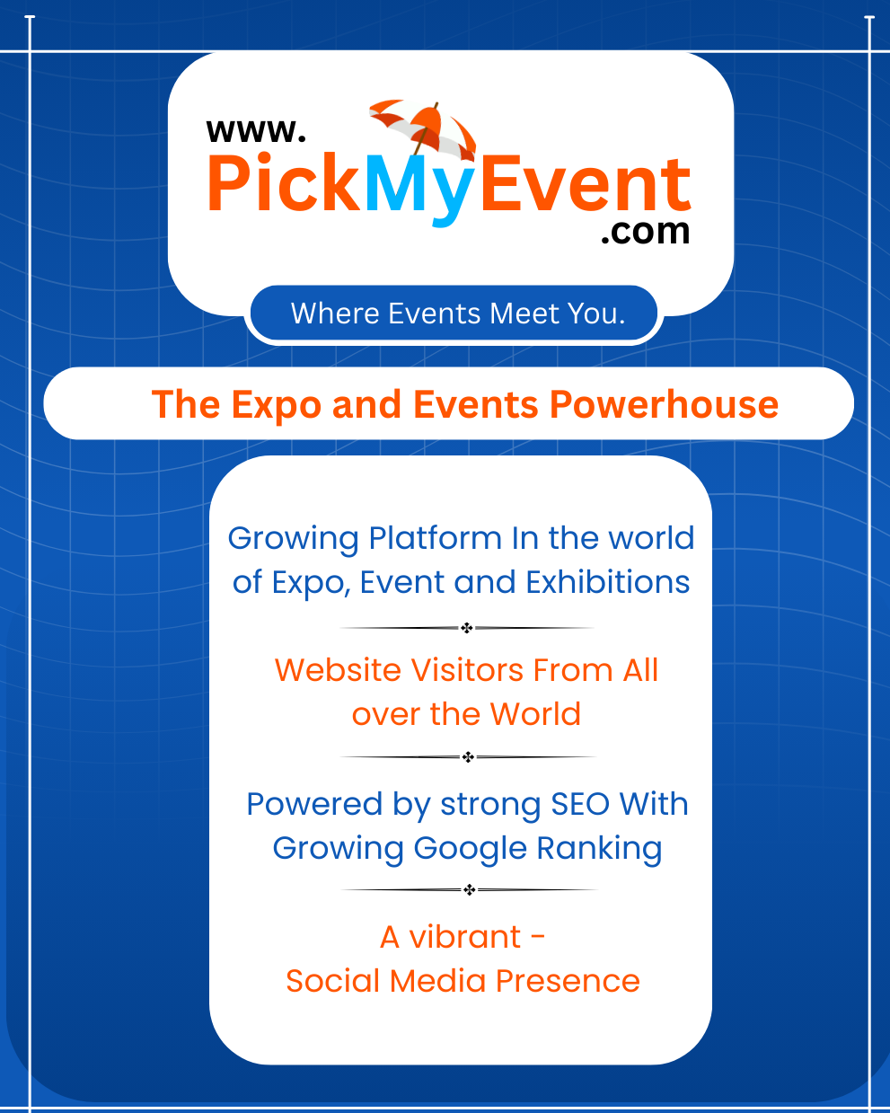 All events and activities listed on PickMyEvent.com are organized by third-party entities. We do not verify the authenticity, accuracy, or legality of these events. Users are advised to perform their own due diligence before participating in any event.